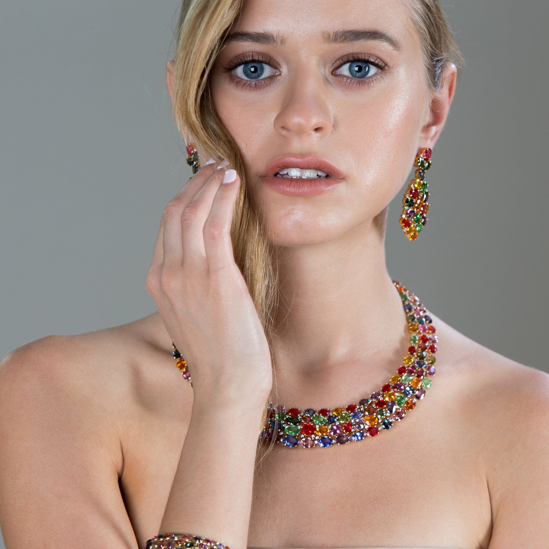 Dazzle Multicolor Tourmaline And Diamond Necklace In 18K Yellow Gold | Tresor Collection