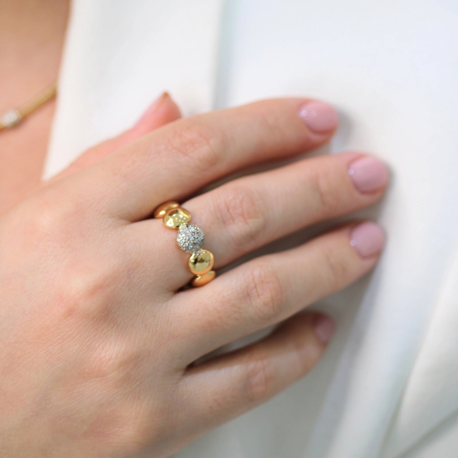 Diamond Beaded Band Ring in 18K Gold | Yellow Gold and White Gold