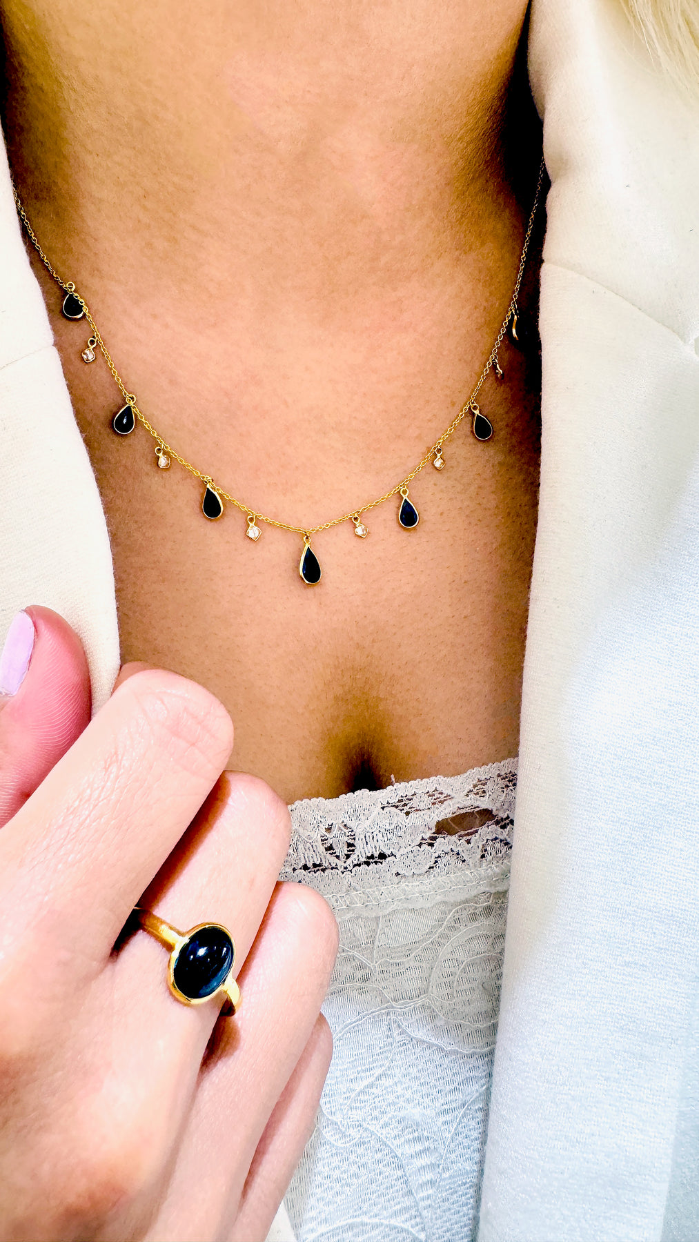 Blue Sapphire ring styled with matching necklace – coordinated luxury gemstone jewelry set