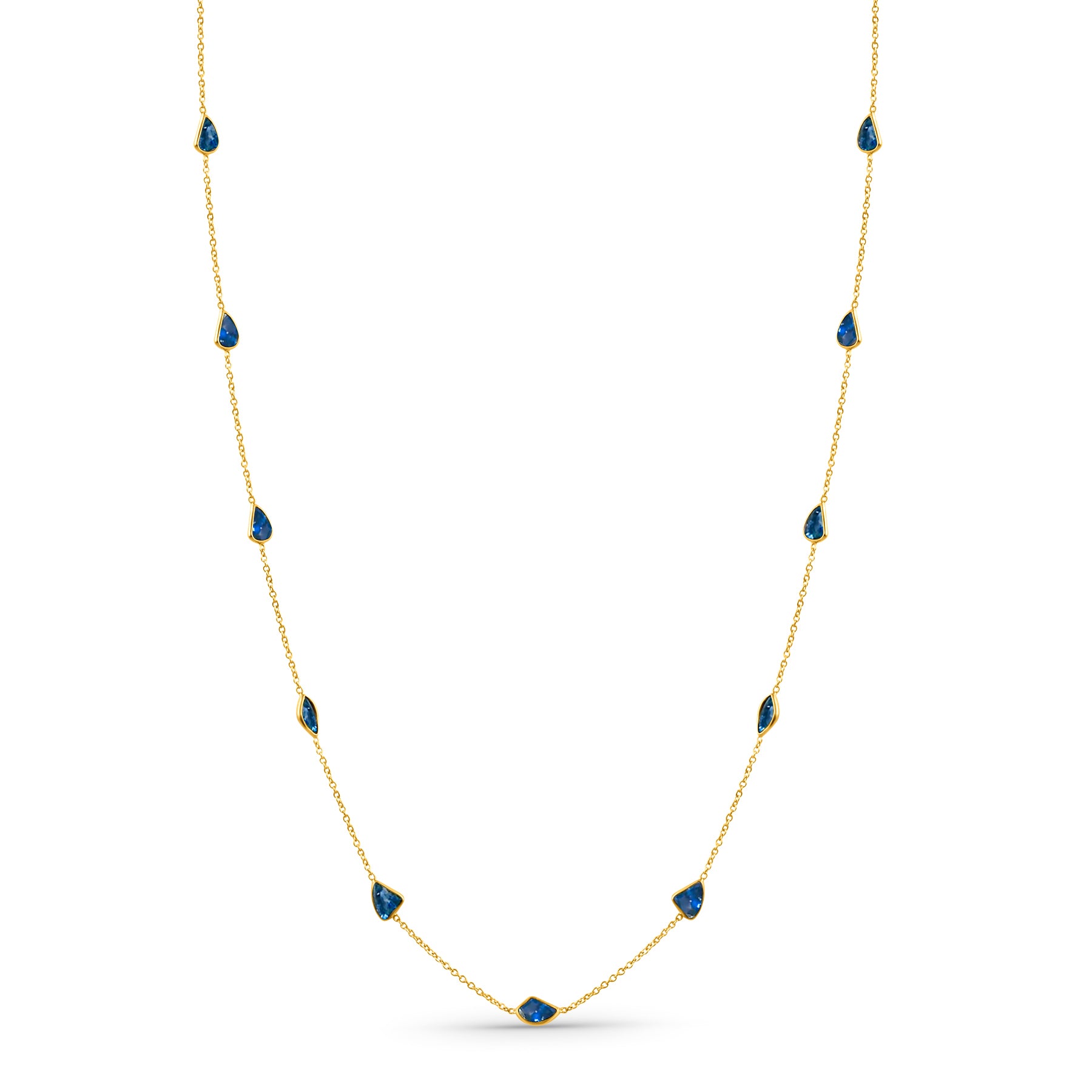 Blue Sapphire Multishape Station Necklace 18K Yellow Gold