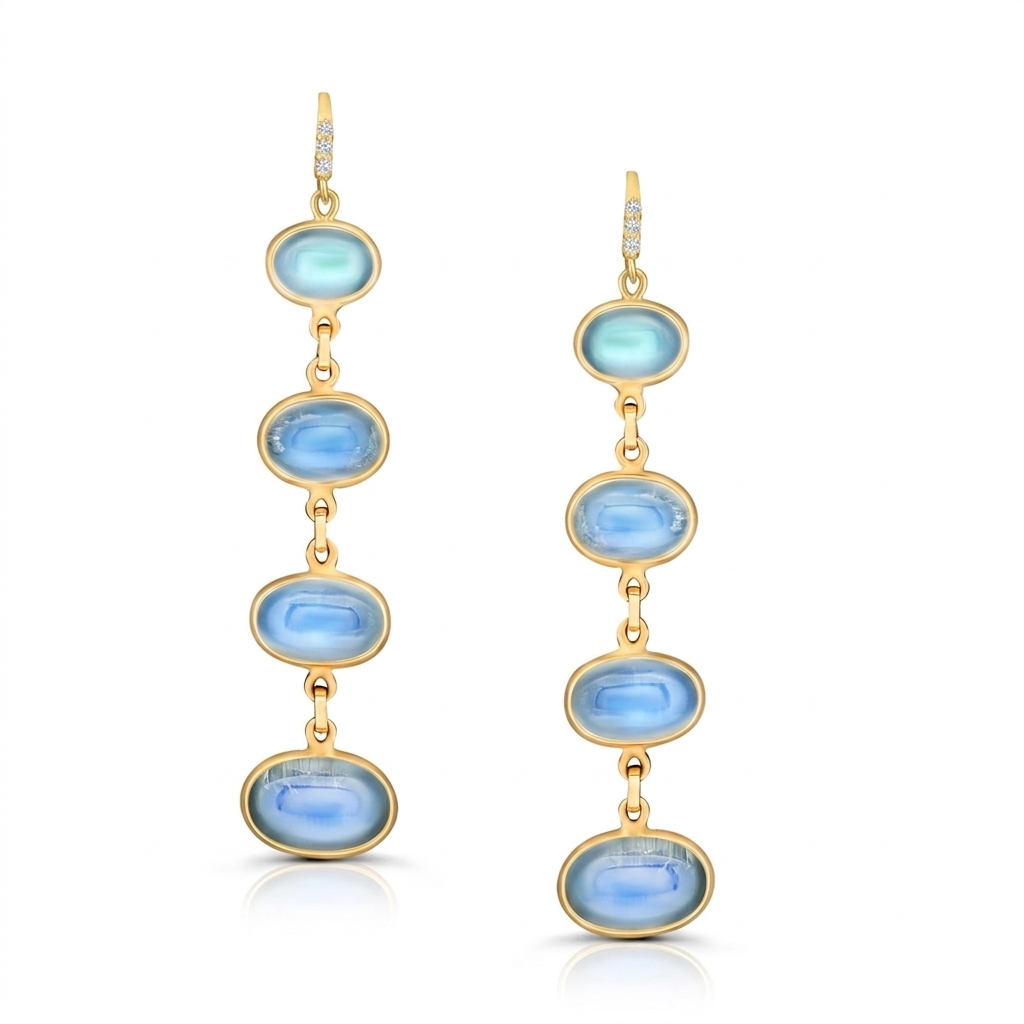 18K Yellow Gold Rainbow Moonstone Earrings Modern Fine Jewelry By Tresor Collection