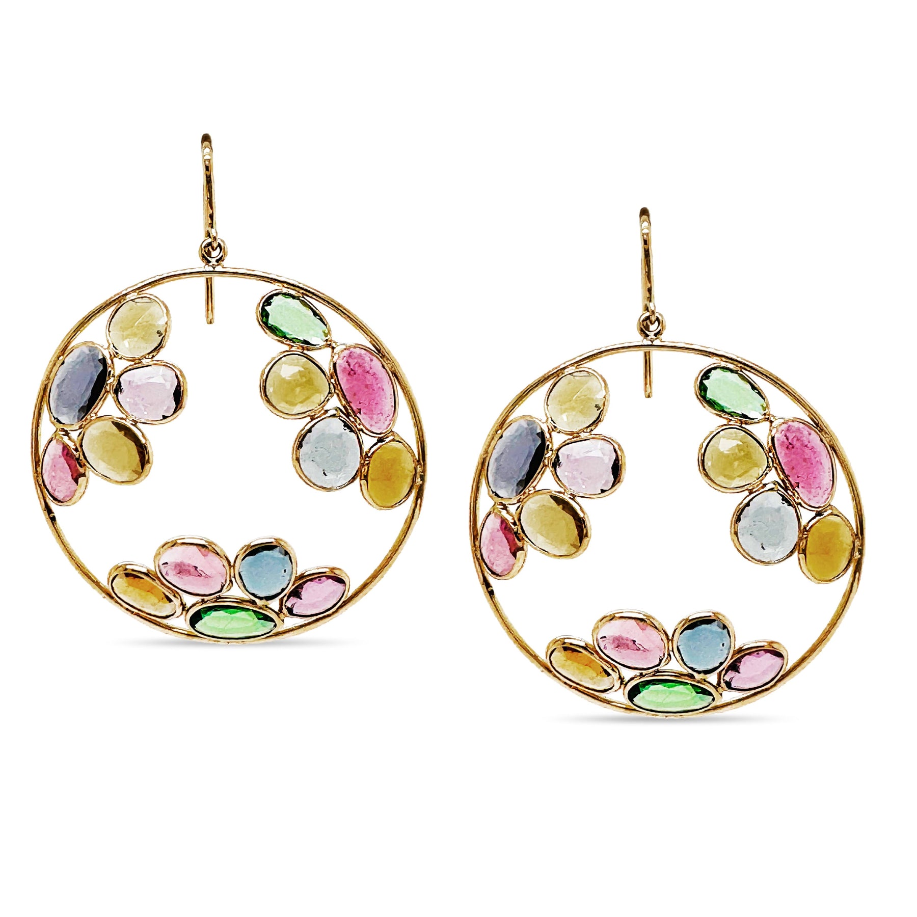 18K Yellow Gold Multicolor Stone Earrings – Tresor Collection