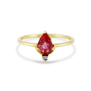 Close-up of 18K gold pear-shaped pink tourmaline ring – handcrafted gemstone jewelry by Tresor Collection
