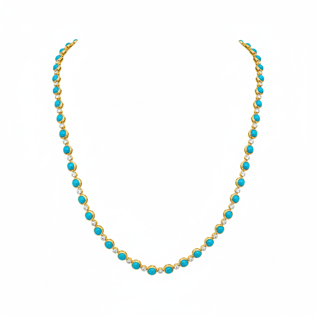18K Yellow Gold Turquoise & Diamond Station Necklace | Tresor Collection