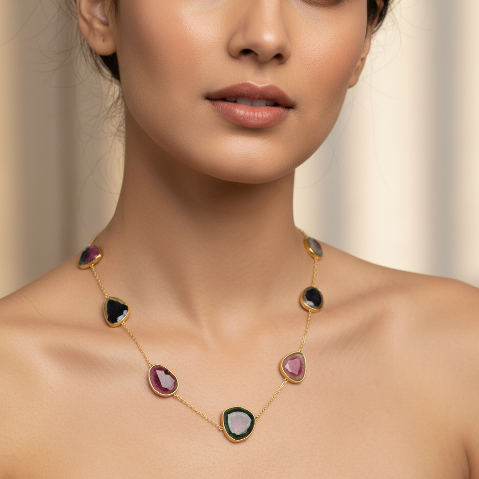 18K Gold Watermelon Tourmaline Necklace – Statement Fine Jewelry by Tresor Collection